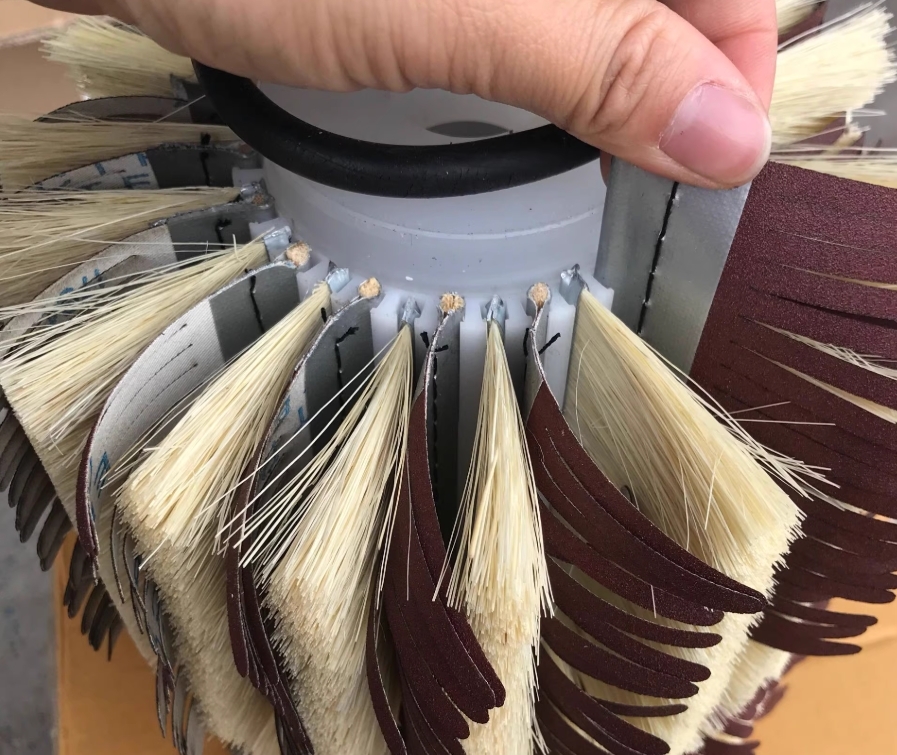 4. O tecido abrasivo é feito de sisal duro ou escova de seda PET para ser montado em um rolo polido, resolver o problema de polimento de produtos de superfície.